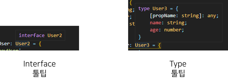 따라서, 튜플이나 &, | 연산자를 필수적으로 사용해야 하는 상황이 아니라면 interface 키워드를 사용하는 것이 바람직하다.