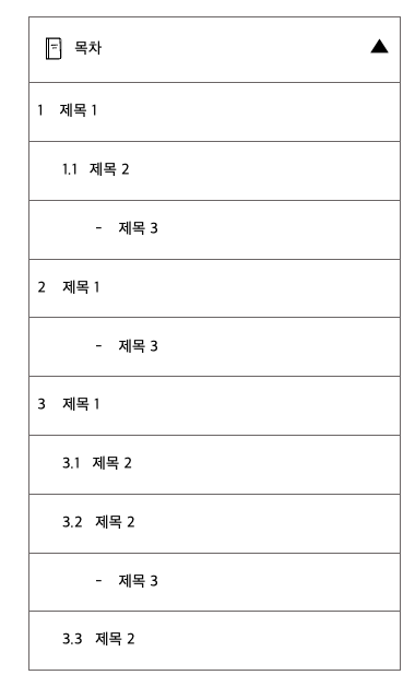 모바일 기기로 접속한 사용자의 경우에는 목차를 표출할 충분한 공간이 없으므로, 목차 열고 닫기 버튼을 우측에 대신 표출하기로 했다.