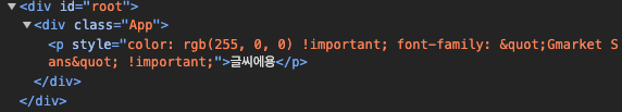 <p style="color: #ff0000 !important; font-family: Gmarket Sans !important">글씨에용</p>