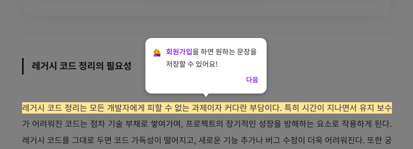 간혹 처음 방문하는 페이지에 들어가면 아래처럼 가이드 영역이 보이는 경우가 있다.