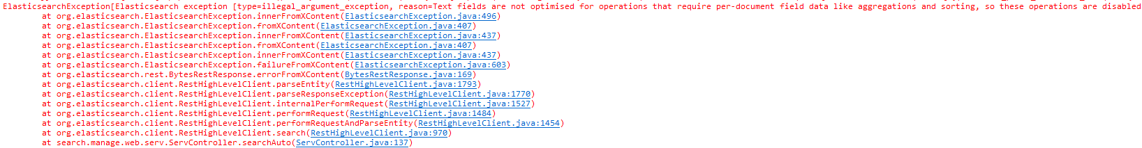 오류 전문은 다음과 같다. 간단히 해석을 해보면 text 필드는 sorting이 안되므로 keyword 필드를 사용하라는 것 같다.