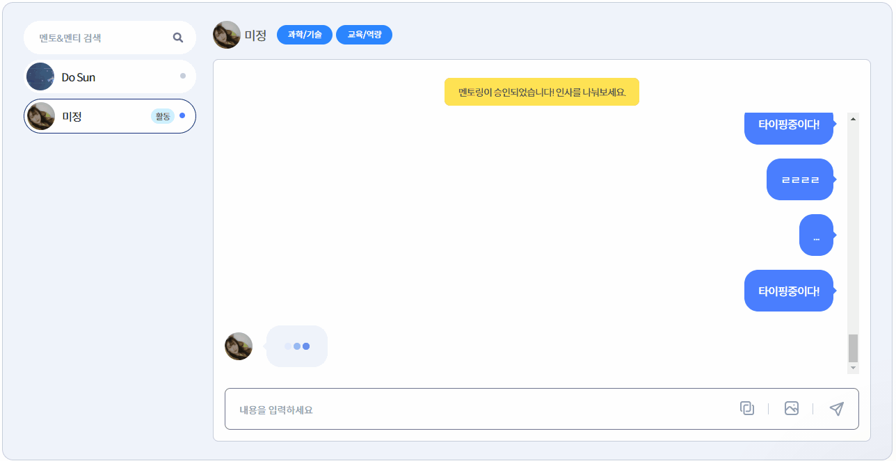 페이스북 메신저처럼 각 사용자들의 타이핑 여부를 알려주는 기능이다.