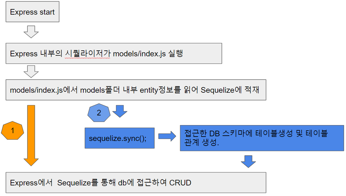 3. Express에서 sequelize를 이용하여 DB에 접근 (동기/비동기)4. 접근한 DB 스키마에 CRUD 실행
